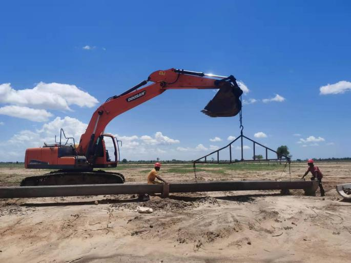 Due to the strike at the Guinean Port, the delivery of materials such as thorn ropes and iron thistles for the fences was delayed by 20 days. In order to ensure the construction task can be completed within the agreed time, the project team immediately started working overtime after the short Spring Festival break to catch up with the progress and spent a busy but fruitful Chinese New Year.