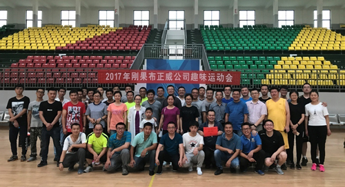 Congo (Brazzaville) Zhengwei held fun games in Mpila school indoor stadium , to celebrate the 51th labor day in lively form. More than 50 employees took part in 10 events, including darts, happy bowling, three legged feet, and crab dribbling.
