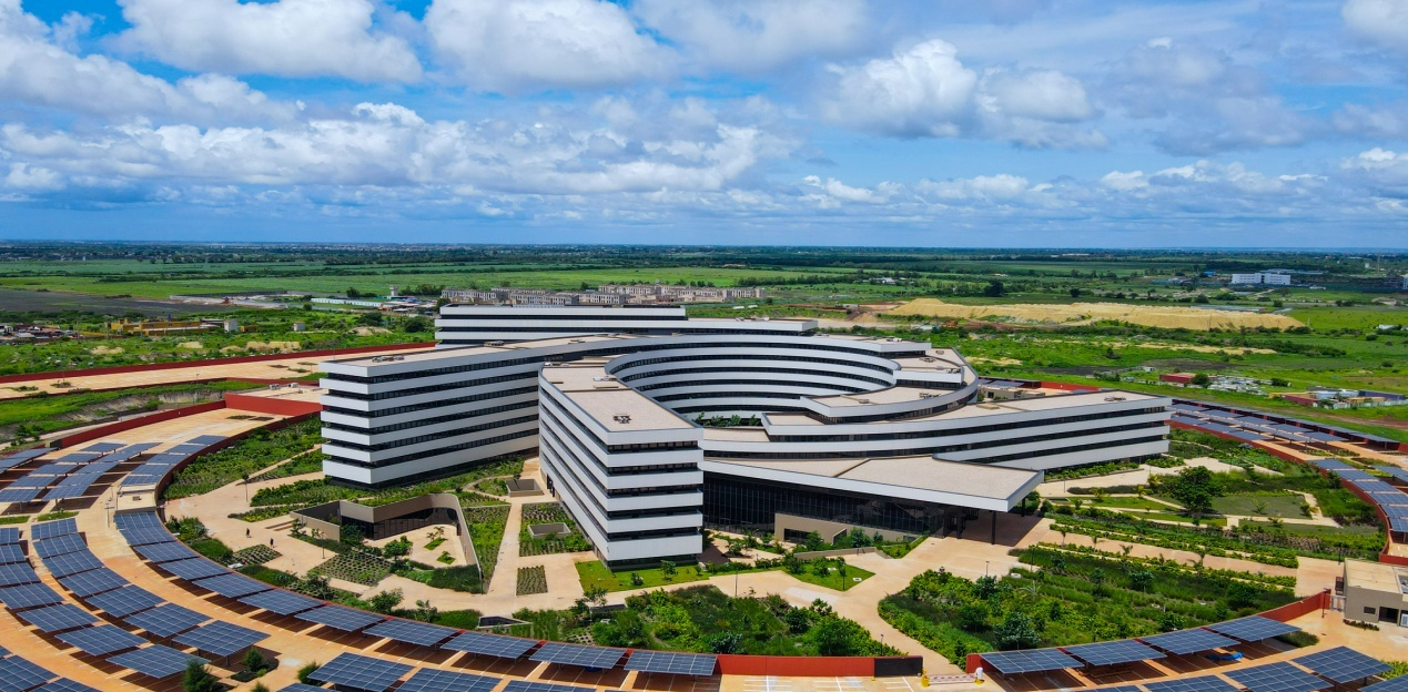Le projet de batiment de bureau de l'Organisation des Nations Unies au Sénégal est situé dans la nouvelle zone Diamniadio à Dakar, la capitale du Sénégal, en Afrique de l'Ouest, il couvre une superficie de 130 000 mètres carrés et a une surface totale de construction de 65 342 mètres carrés, le batiment principal se compose de 7 batiments individuels allant de 1 étage au sous-sol, à 3 étages jusqu'à 8 étages au-dessus du sol, l'apparence est sous forme de moulin à vent, il comprend les bureaux, la salle de réunion, la salle à manger, les espaces publics, etc., offrant un espace de bureau centralisé modernisé et intelligent à environ 2 500 fonctionnaires de 34 organismes des Nations Unies dispersées à Dakar.