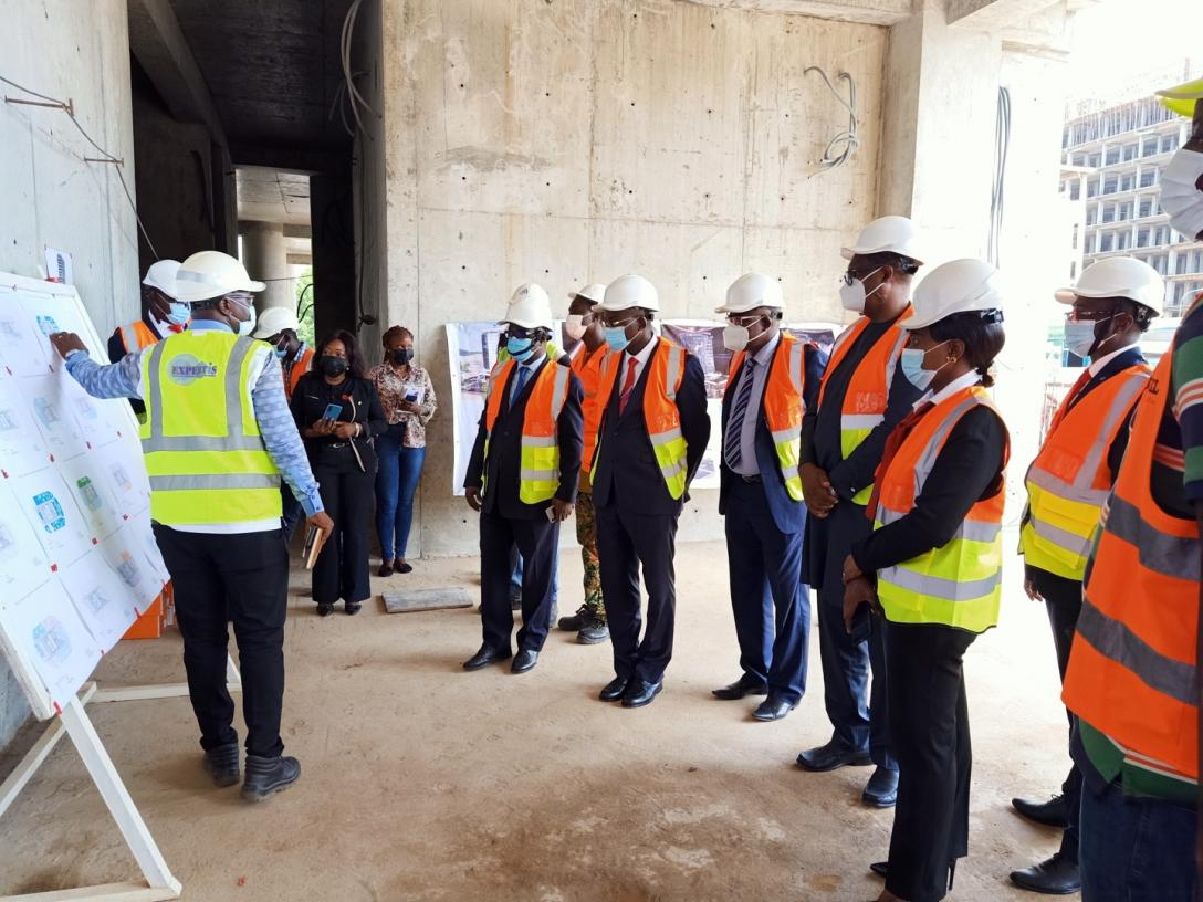 10月6日午前、西アフリカ銀行ブルキナファソ駐在のKI-ZERBO総支配人一行はオーナーであるCORIS銀行のOUATTARA総支配人のご案內(nèi)で、ブルキナファソCORIS銀行のオフィスビルの工事現(xiàn)場(chǎng)に足を運(yùn)んで、オーナー代表、監(jiān)理者およびプロジェクトチームからの狀況紹介を聴取した後で、呉志鑫プロジェクトリーダーの案內(nèi)で現(xiàn)場(chǎng)を見(jiàn)學(xué)しました。