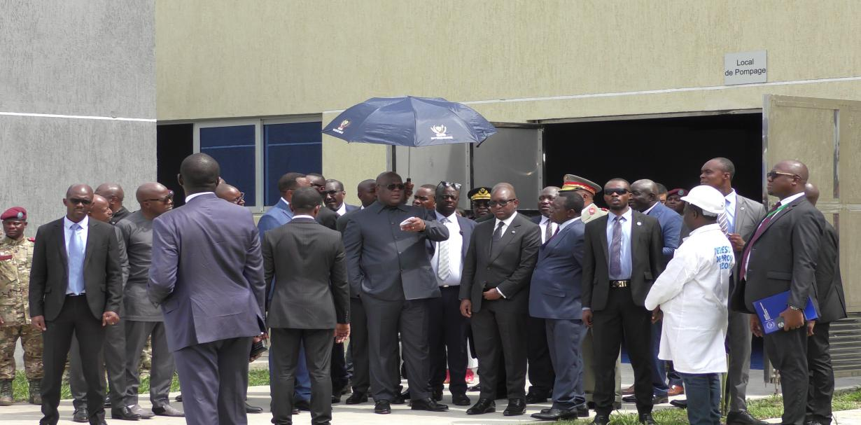 式典終了後、大統(tǒng)領一行はコンゴ民主共和國水道會社の社長に付き添われ、浄水場の中央制御室、二次著水井、ろ過池、送水ポンプ室などの施設を視察した。ジーサイ?キャディ大統(tǒng)領は、歐左內(nèi)給水1期プロジェクトの順調(diào)な竣工がを祝い、浄水場の建設品質(zhì)、自動化程度、飲用水の水質(zhì)などに非常に満足していると稱賛した。