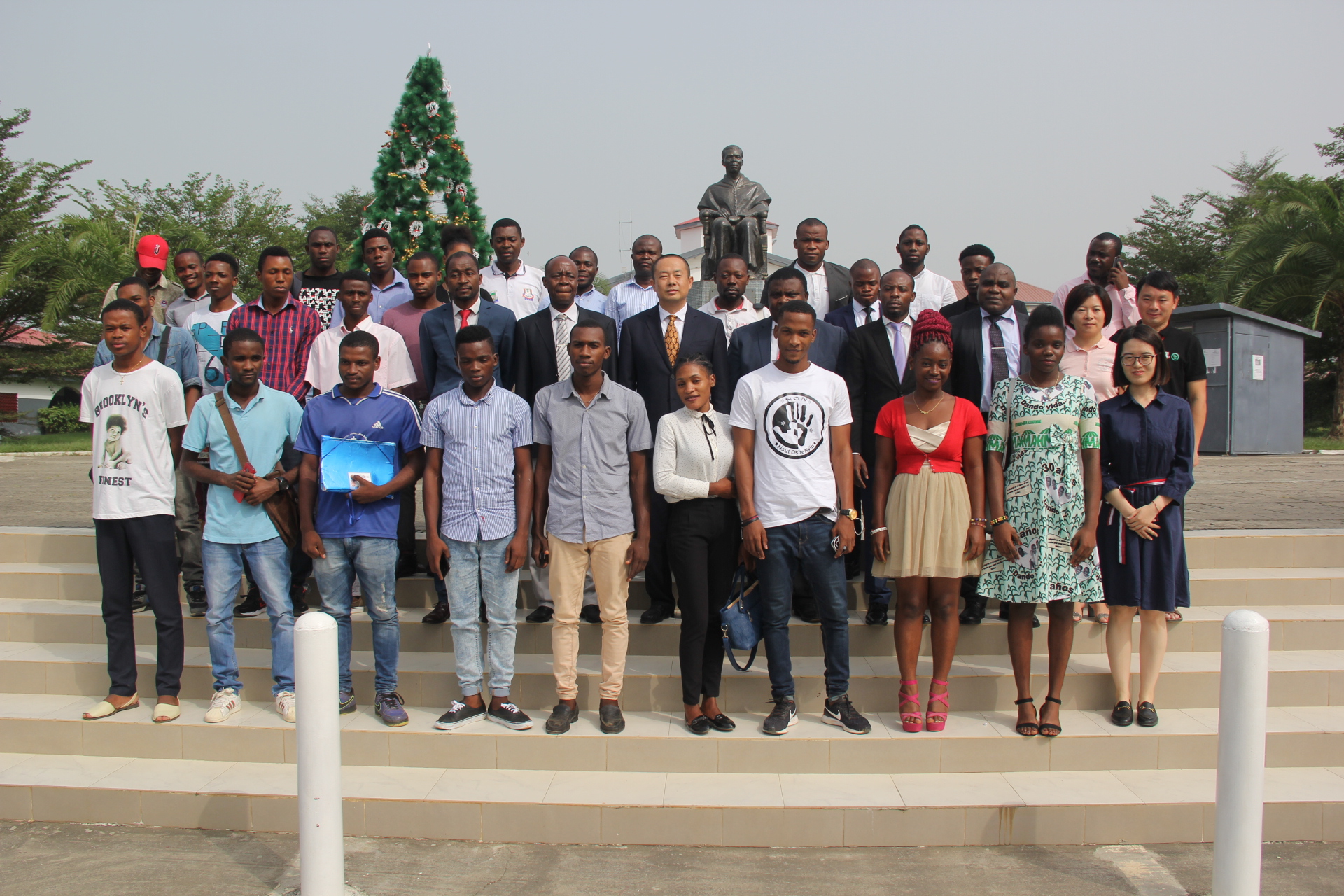 近日,赤幾正威公司第二屆正威獎學(xué)金頒發(fā)儀式在赤道幾內(nèi)亞國立大學(xué)禮堂舉行。赤幾國立大學(xué)秘書長、孔子學(xué)院院長和中方院長、漁業(yè)工程學(xué)院院長及獲獎學(xué)生等參加了頒獎儀式。赤幾正威公司總經(jīng)理谷宏斌代表公司出席儀式。