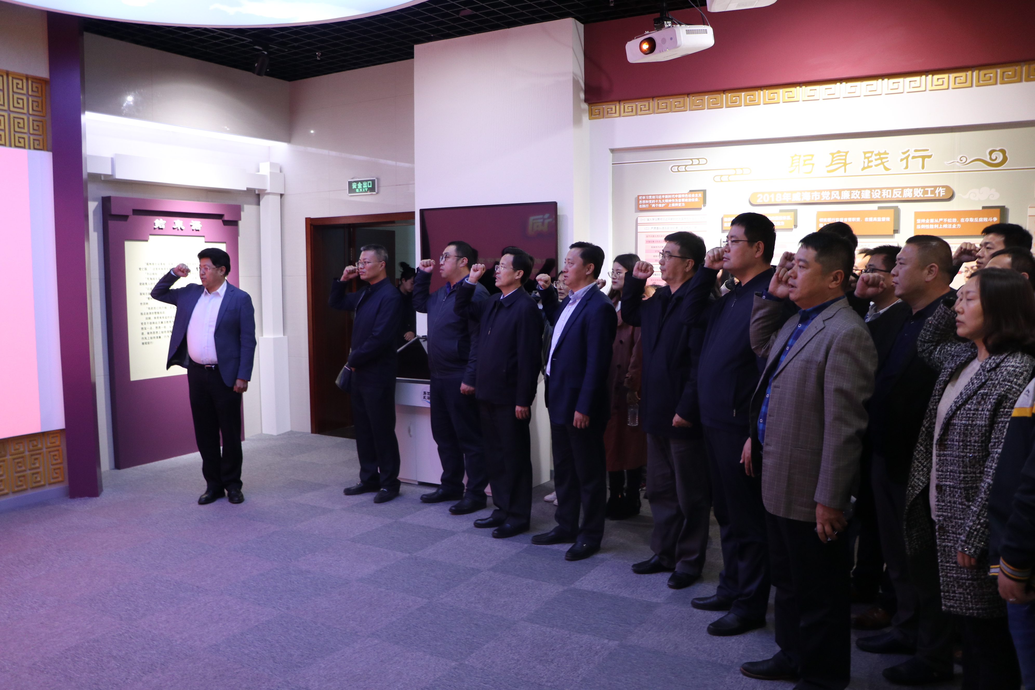 在廉政警示教育基地,黨員干部先后參觀了“旗幟篇”、“利劍篇”、“鏡鑒篇”、“鑄魂篇”、“前行篇”五大教育板塊,觀看了反腐倡廉專題片、黨員干部違紀違法典型案例圖展和部分違紀違法人員懺悔視頻。一張張圖片、一個個案例、一段段視頻,從中央領導對反腐倡廉的重要批示,到威海地方的反面典型案例,內容震撼人心、觸及靈魂、發(fā)人深省,全體黨員接受了一次深刻的精神洗禮。活動最后,全體黨員面對黨旗,舉起右拳,重溫入黨誓詞。